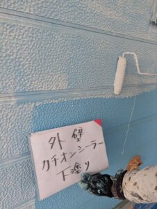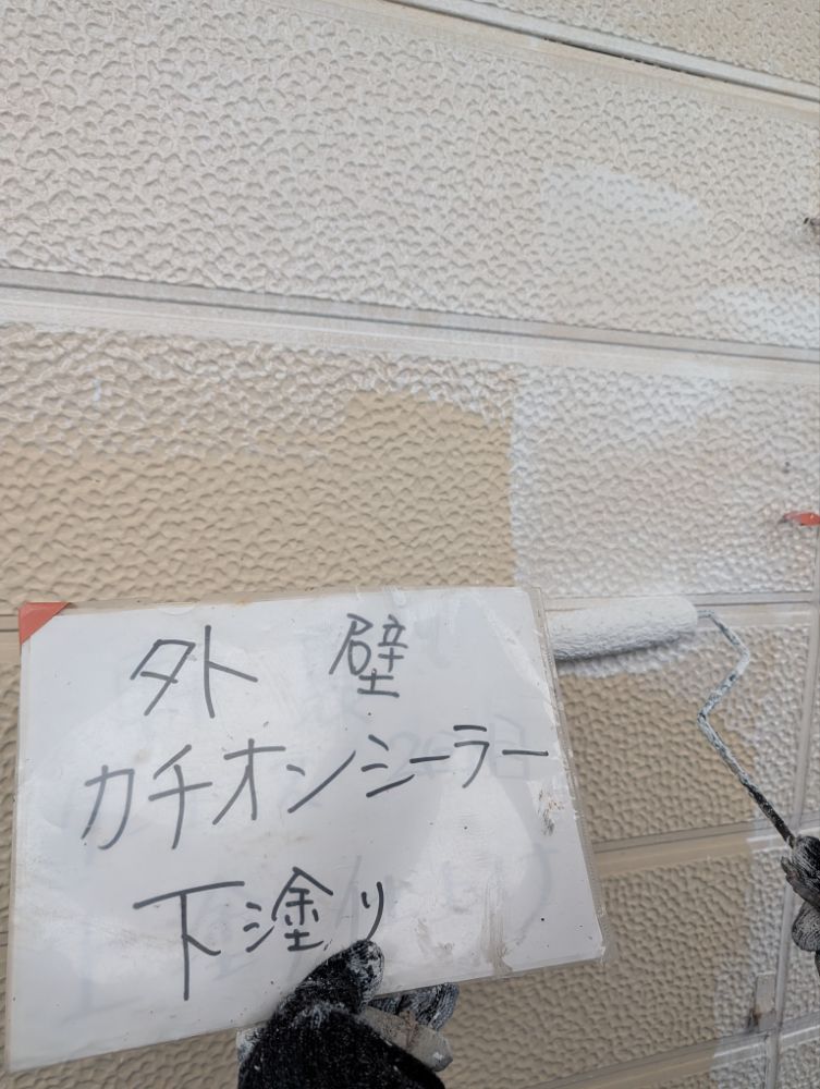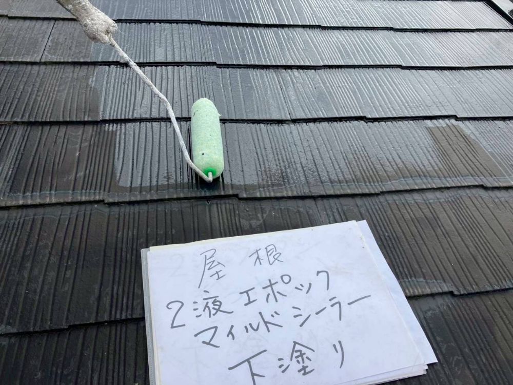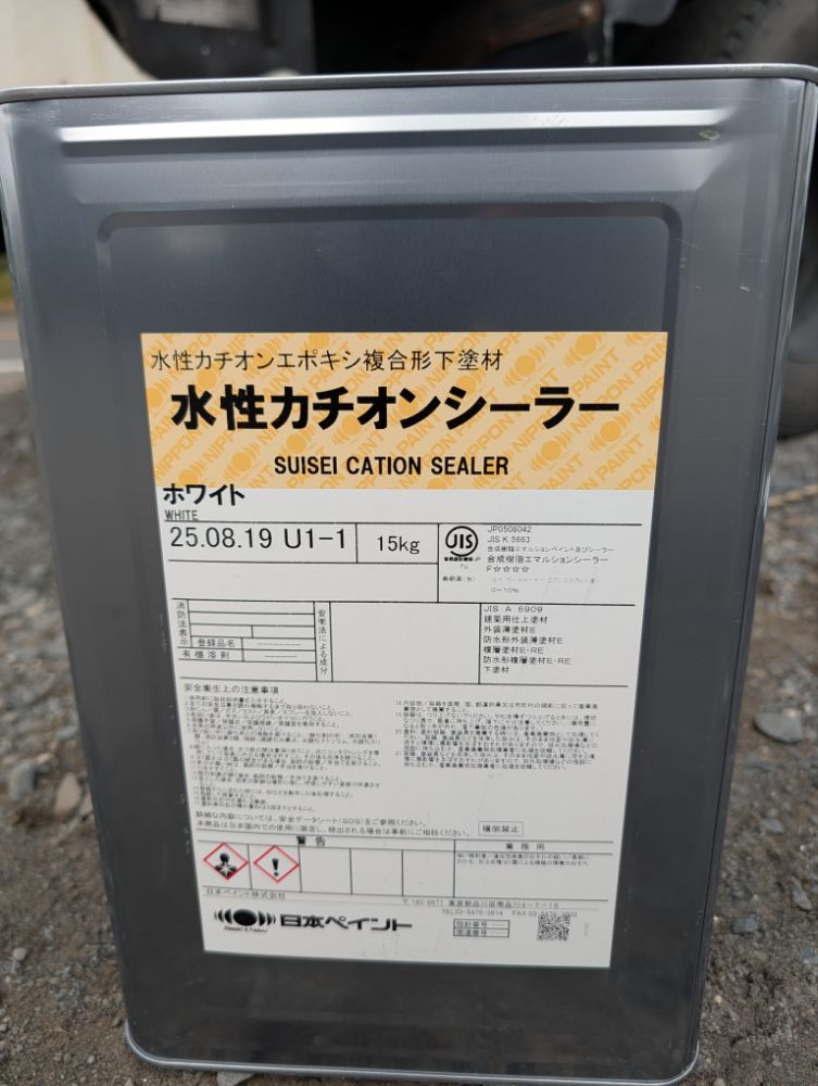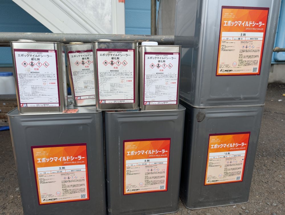 2液のエポックマイルドシーラーで下塗り塗装をしています。