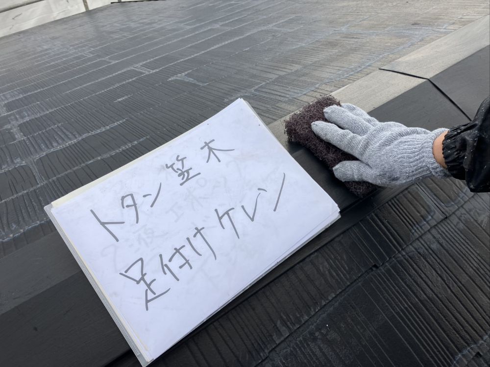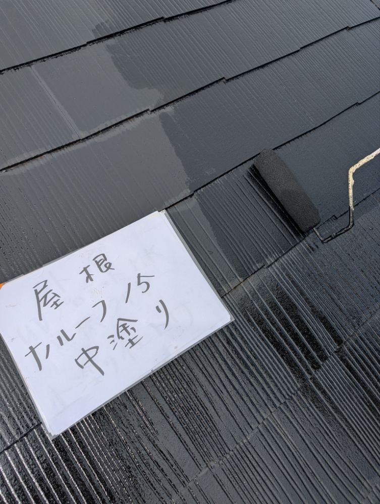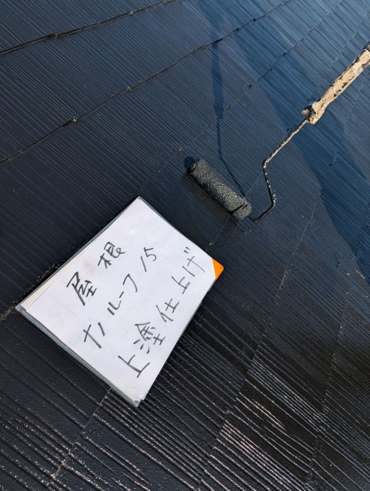 屋根をナノルーフ15で上塗り仕上げ塗装をしています。