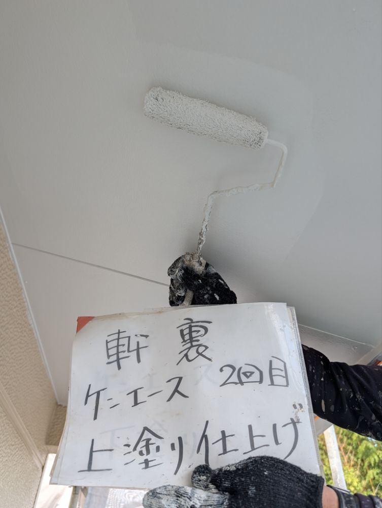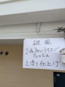 破風を2液のファインシリコンフレッシュで上塗り仕上げ塗装をしています。