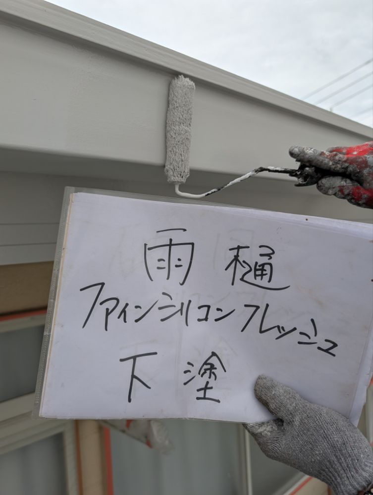 雨樋を2液のファインシリコンフレッシュで塗装を行ないます。