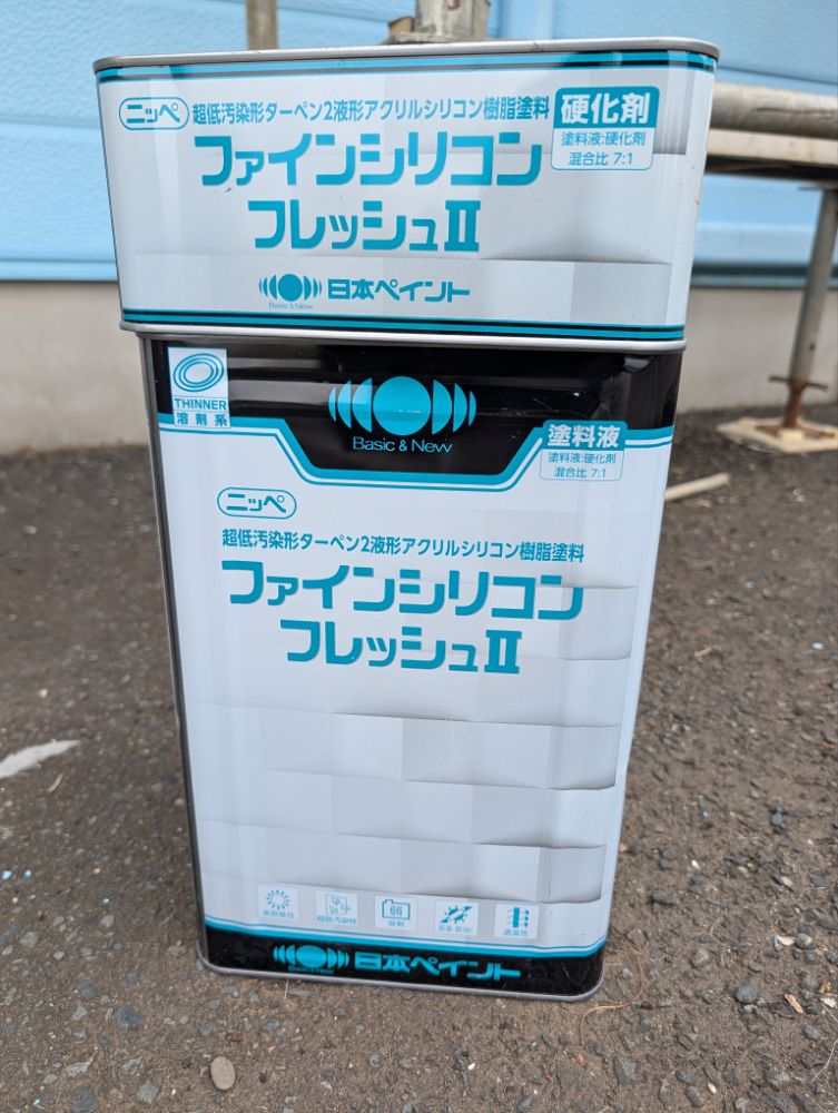 破風を2液のファインシリコンフレッシュで塗装を行ないます
