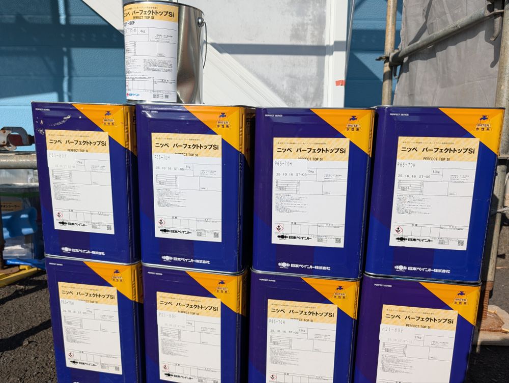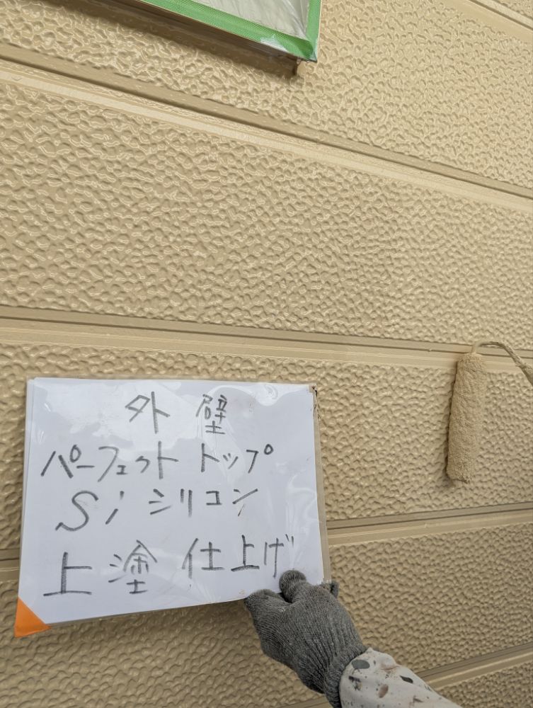 外壁をパーフェクトトップSiシリコンで上塗り仕上げ塗装をしています