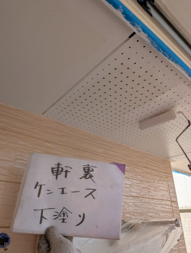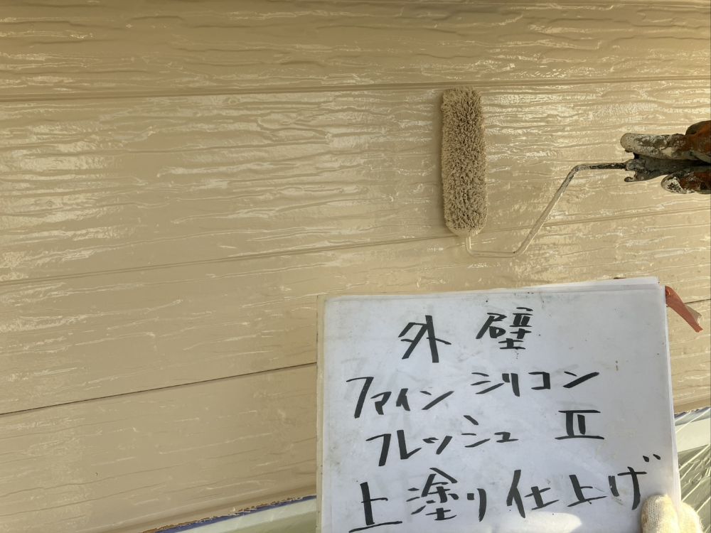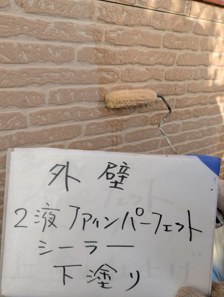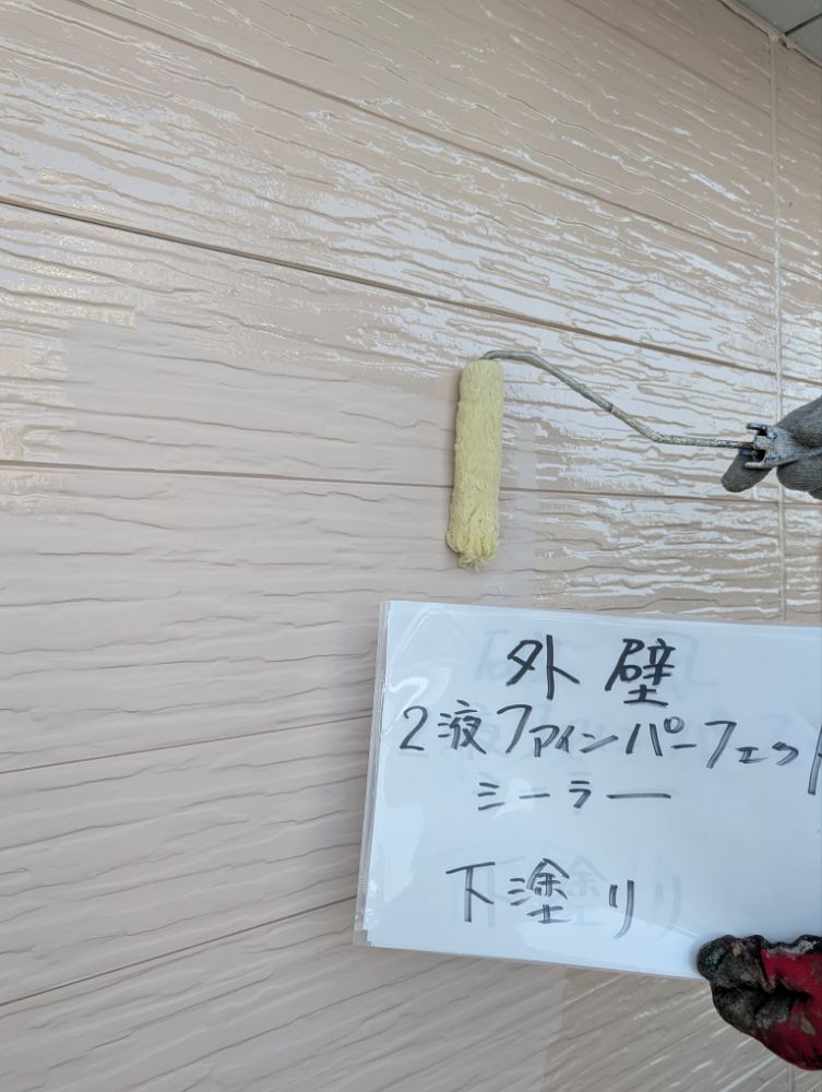 これから外壁の塗装を行ないます。ファインパーフェクトシーラーで下塗りを行ないます。
