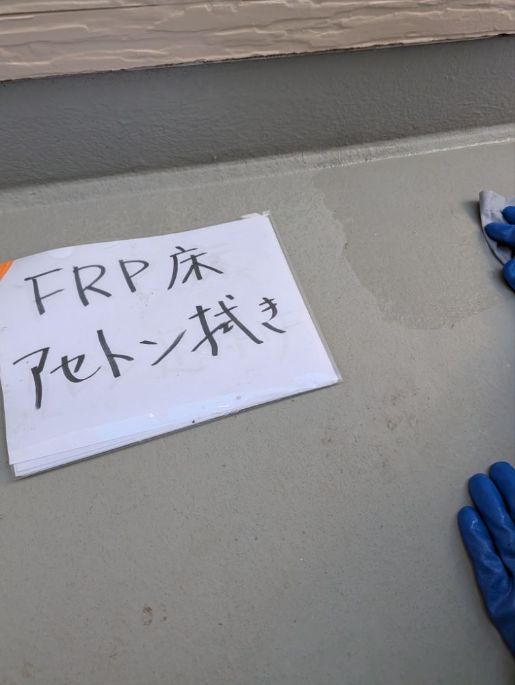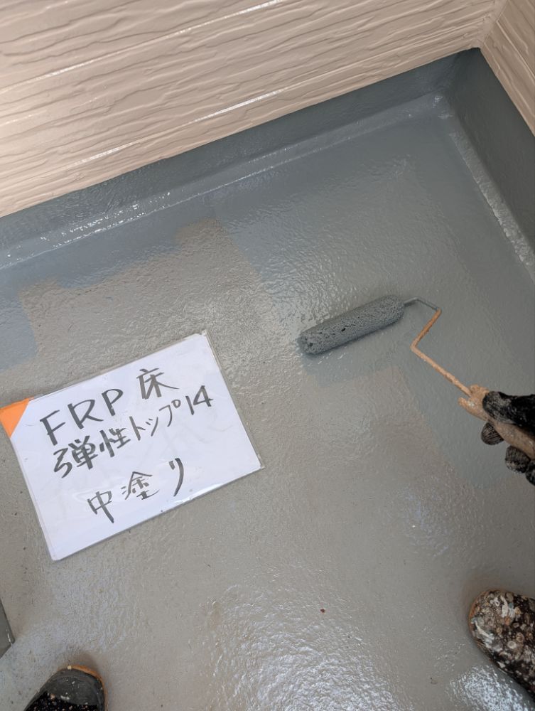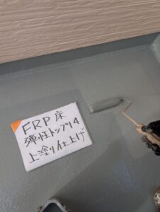 続いて、FRP面を弾性トップ14で中塗りと上塗り仕上げ塗装を行ないます